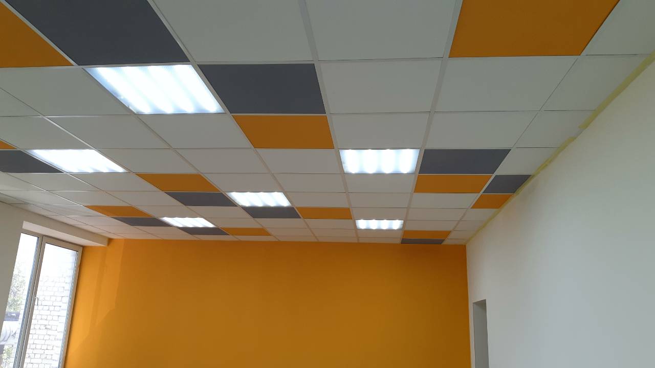 Depending on the specific needs of the room, Armstrong ceilings can be installed using acoustic, hygienic, universal, and moisture-resistant panels. Design solutions can include standard white smooth panels, patterned panels, colored models, and perforated varieties. Combinations of several material types look excellent.