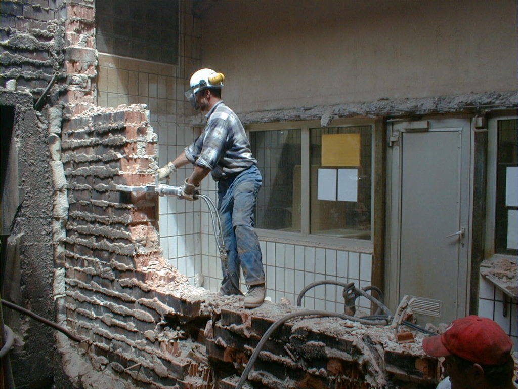 Он относится к демонтажу средней сложности. Обычно такие работы предполагают снос стен, демонтаж перегородок, снятие старых санузлов, вырезание новых проемов для окон, дверей, вентиляции и т.д. На этих этапах применяется разные технологии – лазерные, гидроабразивные, кислородные и т.д.