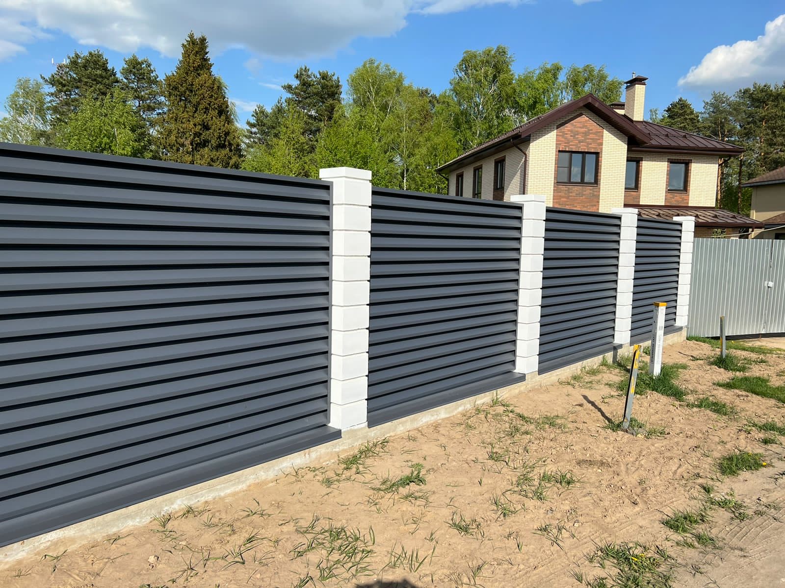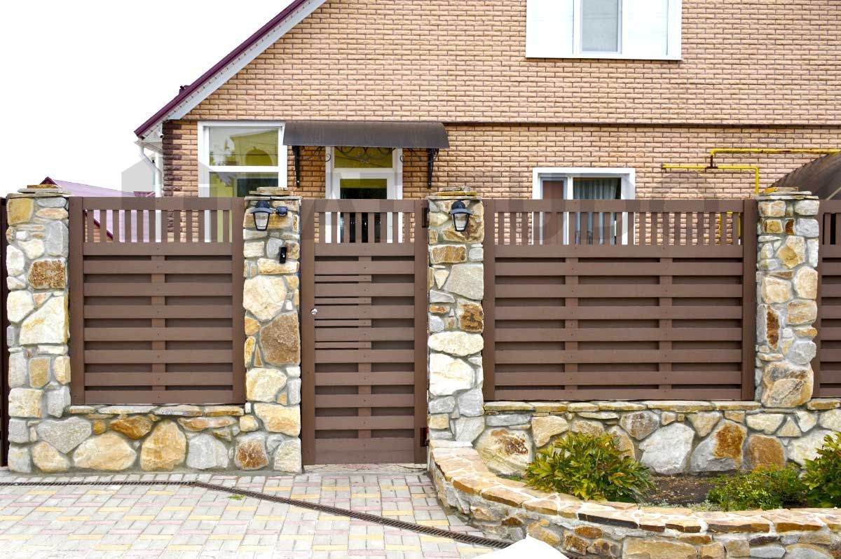 Це огорожа з нарізних металевих планок, що мають скошені краї. Подібний формат виглядає дуже стильно та забезпечує тривалий термін експлуатації.