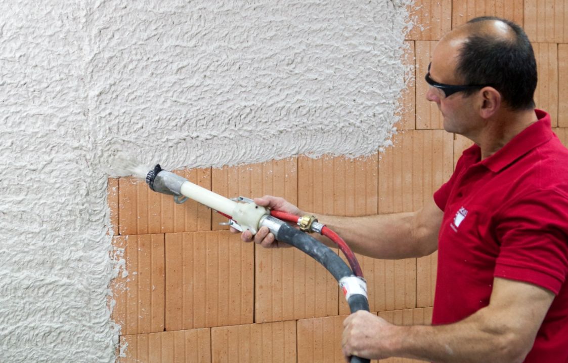 Цей вид нанесення розчину - сучасний метод вирівнювання стін та стелі. У роботі застосовується спеціальна станція, яка забезпечує високу швидкість і надійність покриття. Окрім того, використовуючи цей метод, можна розраховувати на економію матеріалів.